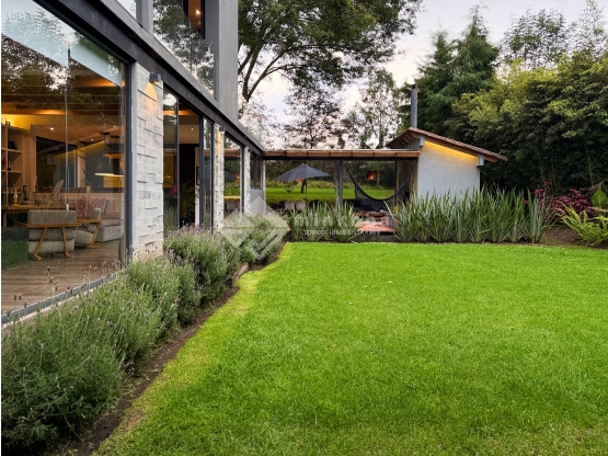Construida con materiales nobles como acero, madera y cemento pulido, esta casa ofrece 4 amplias recámaras, cuarto de servicio, dos terrazas y área de jardín plano y soleado, integrándose de manera natural y exquisita en toda la casa. Disfruta de momentos inolvidables en su jacuzzi para 8 personas, bar exterior, asador y horno de leña. Además, cuenta con tres bodegas y una acogedora chimenea, creando el equilibrio perfecto entre confort, estilo y funcionalidad.