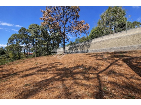 Con 843 m2 de superficie y pendiente descendente, el terreno permite desarrollar un proyecto arquitectónico que aproveche las vistas boscosas y la integración con el entorno natural.